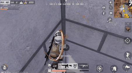 对手在开门准备进入楼房攻楼时,往往会先看向二楼寻找我方位置,而正上方的门框上沿则是视野盲区,在到达二楼前对手都难以察觉,甚至能在对手眼皮子底下打药,对方听得见声音却摸不着头脑。
