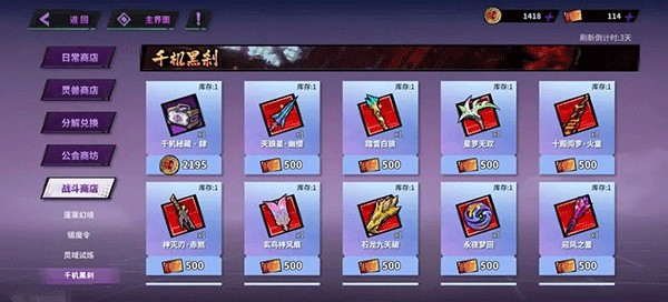 3、黑市→溢魂商店,每个月可以用SR级溢魂碎片兑换。