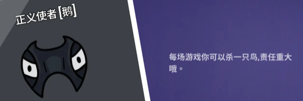 正义使者:每局游戏可以刀一位玩家,只有一刀,至关重要。(刀到加拿大鹅也会报警哦!)