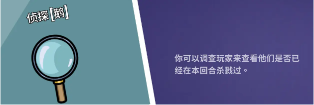 侦探:使用技能可以来查看某位玩家本回合有没有杀戮过。
