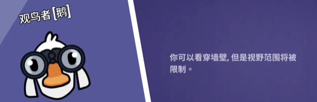 观鸟者:使用技能可以穿透墙壁观看,但视野会受限制。