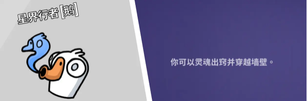 星界行者:使用技能以很慢的速度灵魂出窍8s,画面是灰的,分辨不出颜色,但是可以穿过墙壁听到他人谈话声音并观察情况。