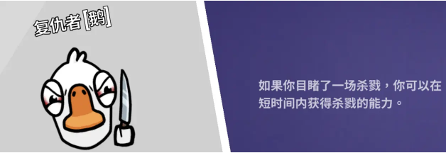 食鸟鸭:游戏内带刀,每场游戏中,可以吃掉一具尸体。
