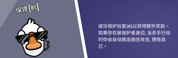 保镖:通过保护一名指定的玩家来获得赏金,若你在被保护者身边,杀手击杀被保护者,则你会被击杀,保护被保护者。