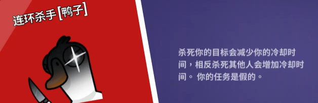连环杀手:游戏内带刀,杀死你的目标可以减少冷却时间,相反杀死其他人会增加冷却时间。