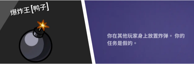 爆炸王:游戏内不带刀,可以在其他玩家身上放置炸弹。