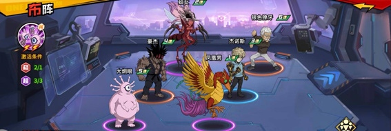 此套阵容是一拳超人最强之男手游集输出与坦度综合性较高的搭配,开局血量上限获得增幅,一速凤凰男正好利用空缺的血量释放绝技,结合被动效果,给予敌方后排的打击,更加方便于2速蚊女绝技后的单体秒杀,若对位成功可导致敌方非再生角色的减员,由于改造杰诺斯绝技伤害非常可观,3速其绝技的释放能造成敌方血量少的角色以沉重打击,甚至使敌方减员。豪杰4速可在后面回合进行替补输出,至于邦古这个工具人,若阵容输出能力强势,则可换成天空王辅助增伤。缺点就是阵容所需练度要求较高。