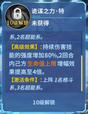 大囧眼十级核心,观其高级核心奥义,新增持续伤害强度增加的效果,不言而喻,更适用于酸蚀、灼烧系阵容,因而疫苗人的地位凸显出来,相比于一级高级核心效果,虽损失了两回合生命值的恢复效果,但保留了生命值上限的增幅,由此推荐使用背心角色,为疫苗人提供巨大的福祉。