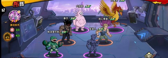 1速童帝通常采用普攻,为波罗斯及蚊女提供暴走状态,如果能量预算足够,也可释放绝技提供崩坏效果。蚊女、波罗斯为输出担当,6速蚊女追击时可全程享受暴走加成。僵尸男以“再生”被动技能作为肉盾担当,普攻致怪受伤,下一回合交替大招给全队提供回血,饿狼主要以普攻形式输出。此阵容搭配相对来说为输出能力最佳,追求挑战boss最高伤害量的玩家可以尝试这套阵容以及4级大炯眼核心,但此阵容对练度要求较高,毕竟僵尸男绝技回血周期为两回合一次。如果没有高练度的饿狼,此位置可换为甜心假面,其主要目的是给怪挂上受伤效果,僵尸男也就不用普攻、绝技交替进行了。