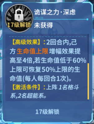 大囧眼十七级核心,一级高级核心效果的加强版,每回合都具有恢复效果,虽说是加强版,但这个核心下的整体生存能力几乎满分,除非被觉醒蚊女刺杀,否则很难出现减员现象,对付其核心的办法只推荐单体逐个击杀。此外,高级核心的激活条件减少一名超能系,其阵容搭配上更加灵活多彩,极少数的人才配享用,吾等平民望尘莫及。