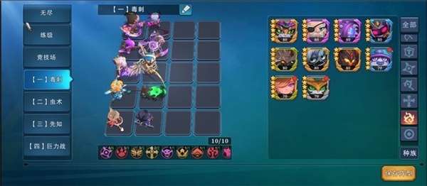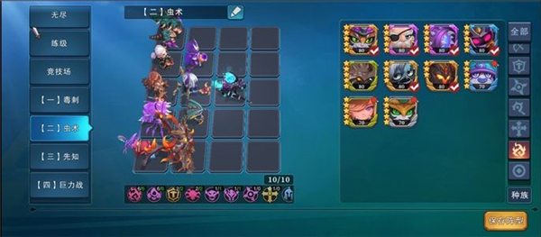 高练度的蜘蛛对后排脆皮的威胁程度很大,3野兽组成铁3角,都是自身带成长的佣兵,和先知一样相辅相成。