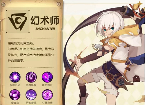 特性说明:幻术师拥有强大的控场能力,他凭借出手速度快的特性,能够在敌人出手前就将其封印,阻止其普攻或发动技能。幻术师还能使对手陷入混乱状态,随机对场上任意目标发动攻击,不受自己控制。但幻术师需要掌控全局,操作难度较高,了解对手队伍中的核心角色并对其封印是每位幻术师的必修课,比起直接输出更喜欢控制能力的猎人们可以挑战一下这一职业。