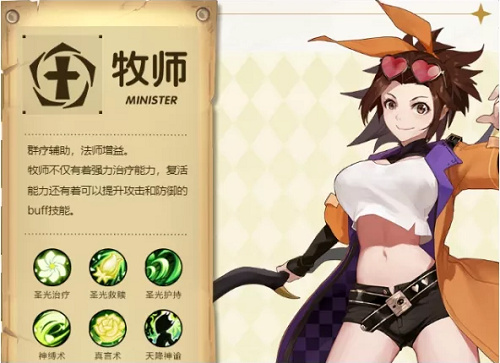 特性说明:牧师的能力永远是团队中最不可或缺的,增益BUFF不仅能提高友方角色的防御属性,还能够提高友方角色的输出能力。但这还不算什么,提到牧师,不得不说的就是他们招牌的治疗能力,为受伤的友方角色恢复血量是他们的拿手好戏。即使不小心被敌方击倒也不用担心,牧师能够将被击倒的队友再度复活,尤其是那些有着高输出能力的角色,有牧师作伴,对敌人就将是毁灭性的打击。