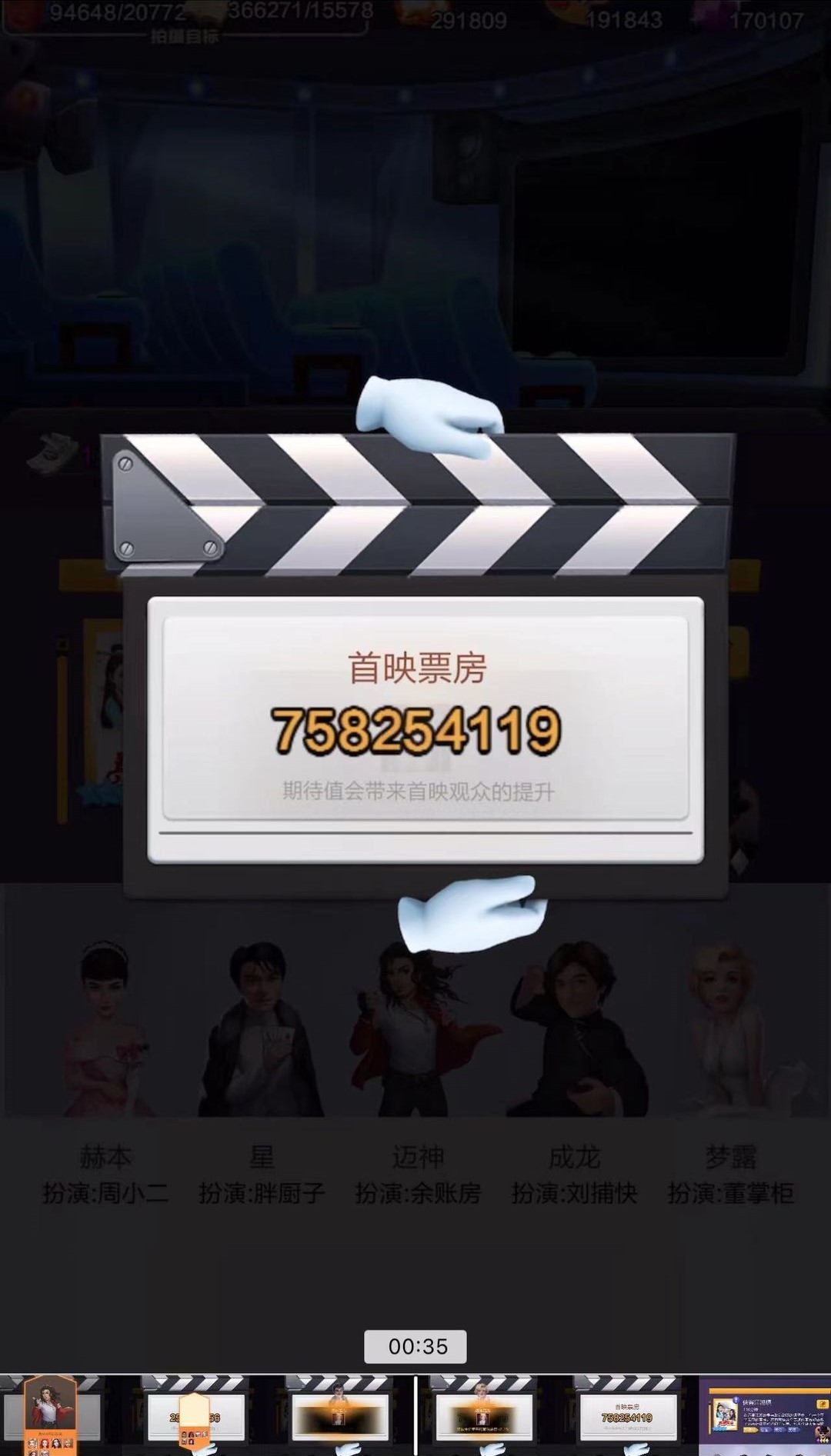 其中在无6星艺人情况下,如果首映值(首映技能+名录+朋友圈+导演)<100%,那么首映比总票提升高(按照每提升2%首映对应提升1%总票房),如果>100%,那么总票房提升比首映高。在5名6星艺人的情况下,该阈值变为200%。
