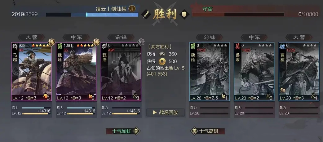 在红度不高或者说白板的情况下,依然是马超领衔的魏延/陆抗+甄洛的开荒队一骑当千。
