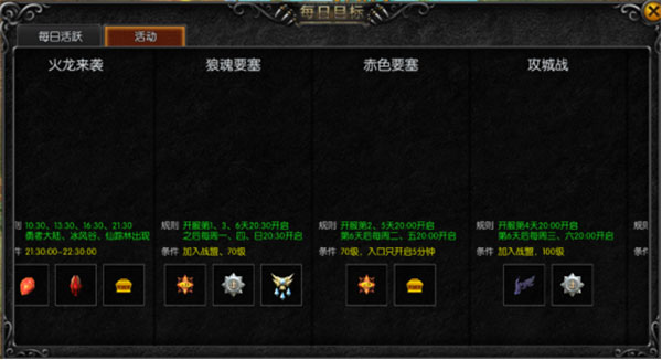 开服第1、3、6天20:00开启,之后每周一、四、日20:00开启。需要注意的是赤色要塞入口只开放5分钟,5分钟内未进入活动的玩家将无法参与活动。玩家需要到达70级并且加入战盟方能参与活动。