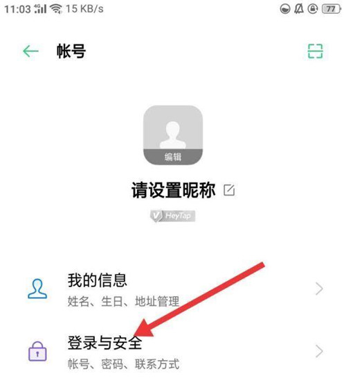 3、进入个人账号页面,点击下方登录与安全按钮。