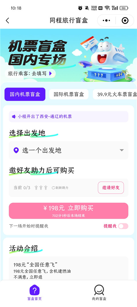 同程旅行发起的“机票目的地盲盒”活动,吸引了超过1000万用户参与抢购,“机票盲盒”相关的抖音、小红书话题量突破1亿,率先引爆清明小长假旅游市场。相信很多小伙伴都被它吸引了吧!那么机票盲盒怎么买,今天百玩游戏网小编就为你带来了机票盲盒购买教程分享,感兴趣的小伙伴一起来看看吧!