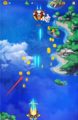 4、点击拖动战机拾取掉落的金币