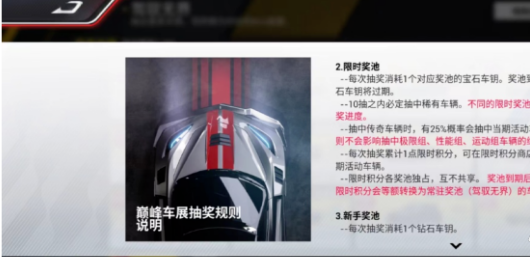 最后则是活动池了,活动池作为与游戏中进行的各项活动绑定的池子,里面的跑车都是最新款,相比于普池中的跑车属性要更高,手感也会更好,各位微氪党在抽完新手池后就可以静静等待活动池的降临了。