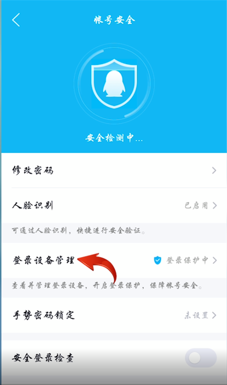 2.在设置选项中选择账号安全,随后在新的页面点击登录设备管理即可。在该选项页面中,用户可以删除QQ账号在该设备的登录功能,这样可以达到清除记录密码或者重新验证登录的目的。同样用户也可以更改各个设备的命名,这样可以更简单地区别不同登录设备项是哪一个设备。