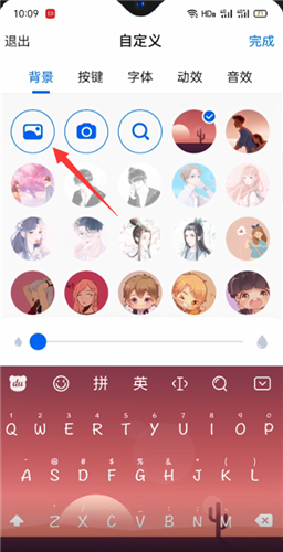 打开手机百度输入法,在皮肤页面上选择自定义,