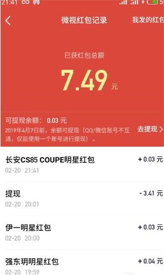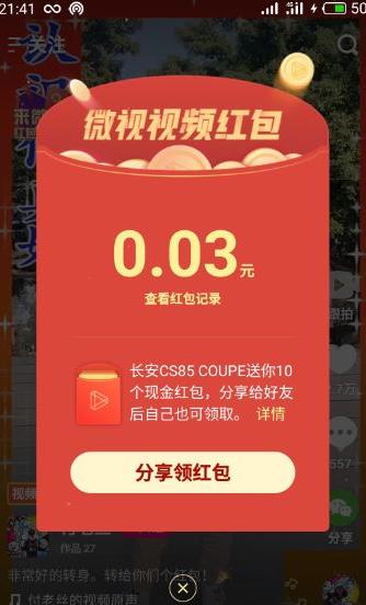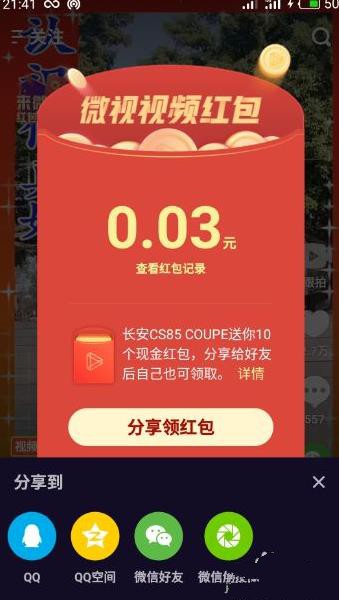6、至此,即可看到刚刚刷视频领到的红包啦。